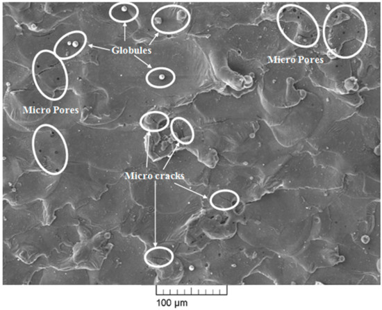 | Chaudhari et al. [22] | Superelastic Nitinol SMA | Ton = 110 μs, Toff = 32 μs, Current = 6 A | Not reported | Ton = 65 μs, Toff = 32 μs, Current = 6 A | SEM analysis showed a large number of microcracks, micropores, and globules at a high discharge energy level, and they were largely reduced at optimized parameter settings. EDX analysis showed the presence of nickel and titanium elements of the workpiece and little amount of oxygen. Work surface was observed to be without the deposition of wire material. |