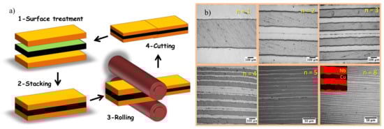 - Hosseini, M.; Pardis, N.; Manesh, H.D.; Abbasi, M.; Kim, D.-I. Structural characteristics of Cu/Ti bimetal composite produced by accumulative roll-bonding (ARB). Mater. Des. 2017, 113, 128–136. [Google Scholar] [CrossRef]
