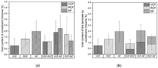 (a) Void content of each laminate with respect to the void content of its constituent layers. (b) Void content of each laminate as a proportion of its constituent layers.