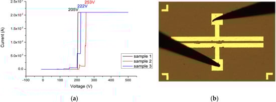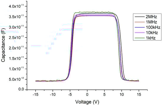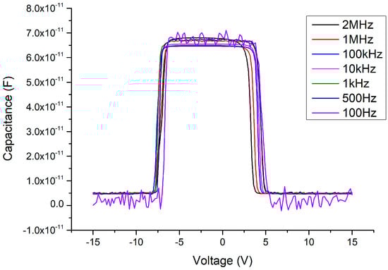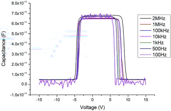 2.3. Measurement of the Variable Capacitance Characteristics and Breakdown Voltage