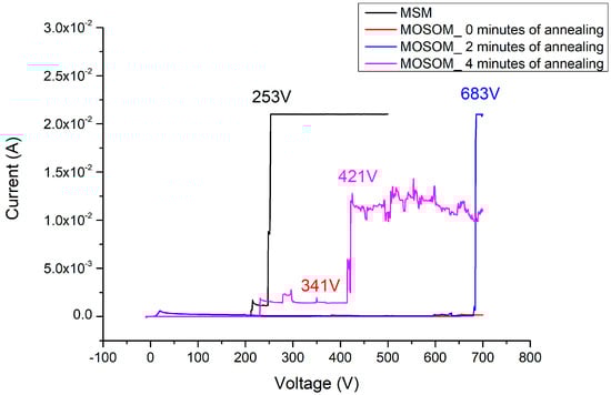 3.5. Influence of the Oxygen Annealing Process on the MOSOM’s I-V Characteristic