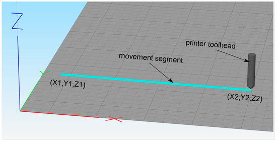 | X1 (mm) | Y1 (mm) | Z1 (mm) | X2 (mm) | Y2 (mm) | Z2 (mm) | Speed (mm/min) | Extrusion | |