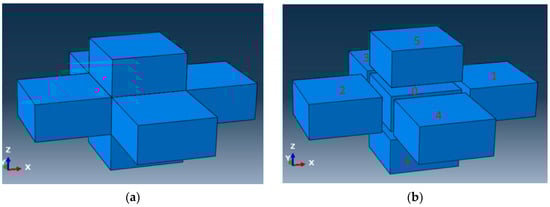 - = contact area with the element connected to the front, left, back, right, top, and down faces, respectively;