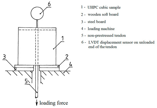 Experimental setup of a pull-out test of the bond strength between the prestressing reinforcement (non-prestressed tendon) and concrete.