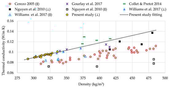 - Collet, F.; Pretot, S. Thermal conductivity of hemp concretes: Variation with formulation, density and water content. Constr. Build. Mater. 2014, 65, 612–619. [Google Scholar] [CrossRef]