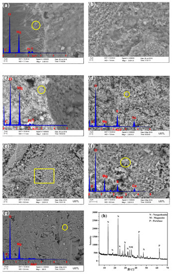 At the same time, nesquehonite can also react with MgO to form artinite because nesquehonite is reactive and can be converted to hydromagnesite [28]. The reaction is as follows: