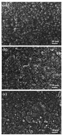 SEM top-view image of Co44-ZIF-8 membrane with different amounts of mIM: (a) 4 mmol, (b) 8 mmol, and (c) 16 mmol.