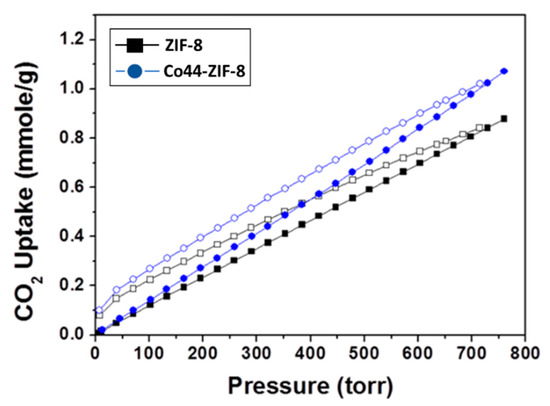 CO2 adsorption–desorption of ZIF-8 and Co44-ZIF-8.