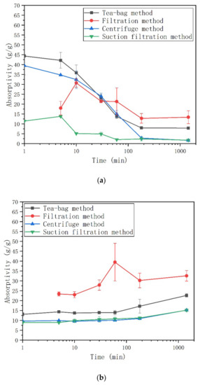 Zhong, P.; Wang, J.; Wang, X.; Liu, J.; Li, Z.; Zhou, Y. Comparison of Different Approaches for Testing Sorption by a Superabsorbent Polymer to Be Used in Cement-Based Materials. Materials 2020, 13, 5015. https://doi.org/10.3390/ma13215015
