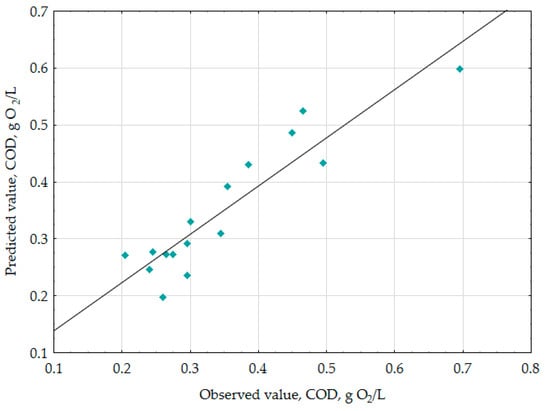 Predicted vs. observed values plots for COD (g O2/L).