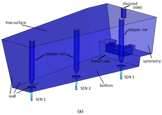 Today, the continuous casting process is the dominant method of steel casting. The basic aggregates of the steel continuous casting machine are tundish and mold. The multitude of functions fulfilled by the tundish is the reason for the undertaking of many studies by scientists and steelmakers from all over the world of science and industry. The positive aspects of the flow of liquid steel through the tundish are widely used in practice. Research undertaken by scientists is still necessary to identify specific parameters of technological processes and to further optimize the process. They can be partly carried out directly on devices operating in industrial conditions, using specific control and measuring devices. The results of such research (called industrial) are of great practical importance, as they enable their direct application in real conditions. Unfortunately, due to the specificity of the processes carried out in metallurgical devices, conducting industrial research is limited in scope and usually concerns individual measurements. In a situation where it is impossible, difficult and/or expensive to carry out relevant tests directly on a working device, model tests using physical [1,2] or numerical [3,4,5] modeling techniques are conducted. Due to the simplifications used, such research also has some limitations, but they have nevertheless become equal research tools for scientists. This applies to both laboratory tests carried out on physical models and numerical tests carried out using computational fluid dynamics (CFD). Simulating the process is cheaper and requires much less input, material or human.