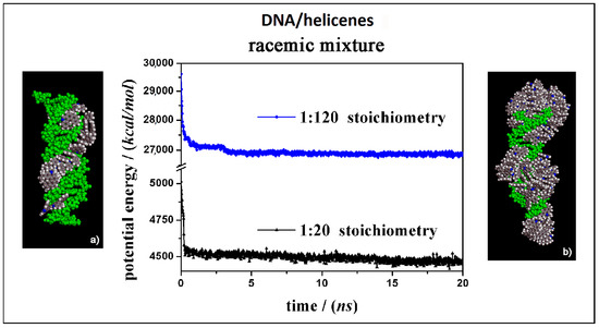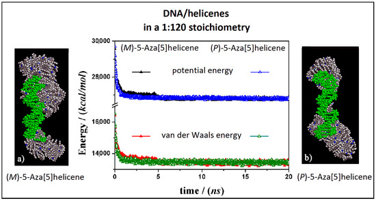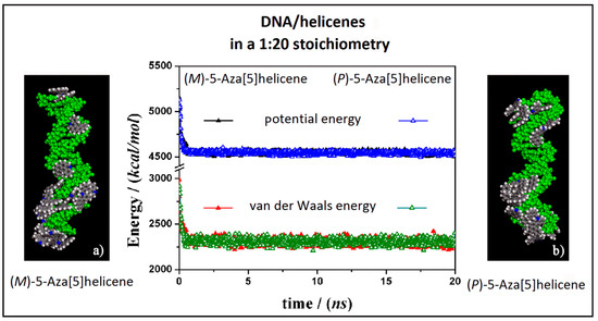 Raffaini, G.; Mele, A.; Caronna, T. Adsorption of Chiral [5]-Aza[5]helicenes on DNA Can Modify Its Hydrophilicity and Affect Its Chiral Architecture: A Molecular Dynamics Study. Materials 2020, 13, 5031. https://doi.org/10.3390/ma13215031