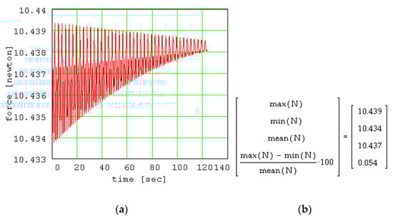 The variation of the normal force: (a) plot of normal force variation; (b) Mathcad results for extreme and mean values of normal force.