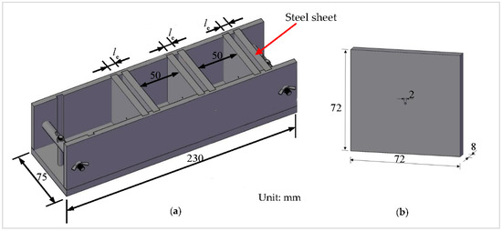 The steel mold of the fiber pull-out specimen: (a) steel mold, and (b) steel sheet.