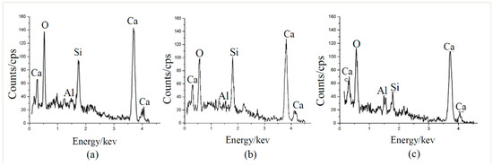 EDX results of (a) basalt fiber-mortar interface, (b) PVA fiber-mortar interface, and (c) glass fiber-mortar interface.