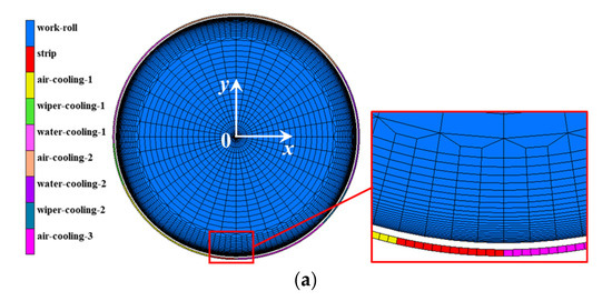 - Hwang, S.M.; Sun, C.G.; Ryoo, S.R.; Kwak, W.J. An integrated FE process model for precision analysis of thermo-mechanical behaviors of rolls and strip in hot strip rolling. Comput. Methods Appl. Mech. Eng. 2002, 191, 4015–4033. [Google Scholar] [CrossRef]