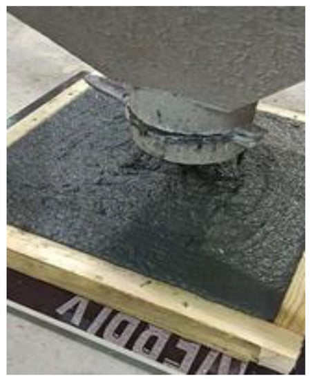 All the cube specimens were cast in three layers with minor hand vibration to expel the air trapped in the fresh concrete. For plates, concrete was poured from the centre and let it flow freely towards the four edges (see Figure 2). To avoid the segregation of fibres, no vibration was applied.