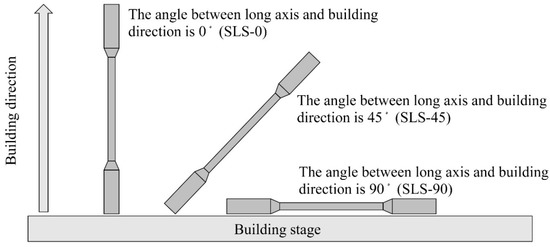 (1) In both metals, the tensile strength of specimens with the same stress direction and building direction was small. The values of the specimens molded by SLS (Ti-6Al-4V: 1074.73 MPa, Pure Ti: 484.46 MPa) were larger than those of the cast specimens (Ti-6Al-4V: 967.21 MPa, Pure Ti: 379.85 MPa) for both metals.