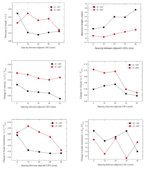 The value of −ΔPz/Pproj basically decreased with the increasing LSC spacing. This value is related to mi and ∆Vi. The value of −ΔPz/Pproj at θ = 60° was higher than that at θ = 30°.