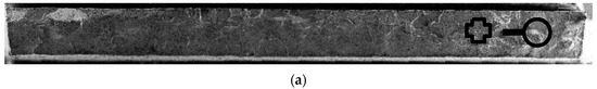 Finally, the welded samples were positioned using a device specially designed to align the samples and cut in the standard “paddle” shape using a waterjet cutting machine. The cut samples fixed in the positioning device are presented in Figure 3. Type 2 samples were samples with simple butt welds to joint opposing plates. Type 3, however, were samples consisting of two plates overlapping each other for 30 mm with fillet welds jointing each end of the plate on both sides.