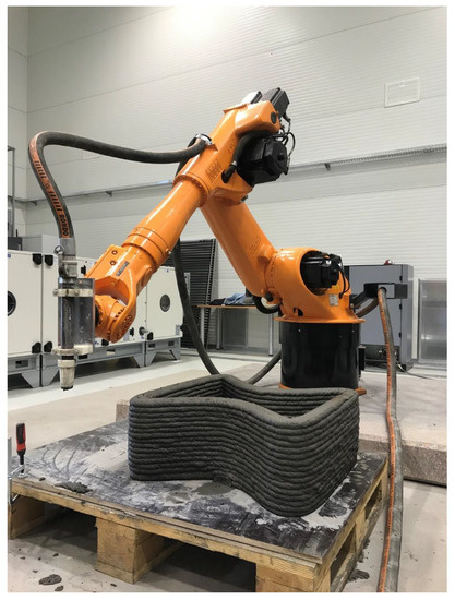 AM used in the construction industry, called 3D concrete printing technology (3DCP), has developed rapidly in recent years. While being more experimental than general, it is already used for the construction of small-sized buildings, complex-shaped prefabricated concrete elements, and constructions without requiring the use of expensive formwork. However, this technology has several issues that have not yet been fully resolved, though autonomous construction systems have the potential to improve the speed, quality, and safety of the onsite fabrication of architectural-scale structures under various environmental conditions [3,4].