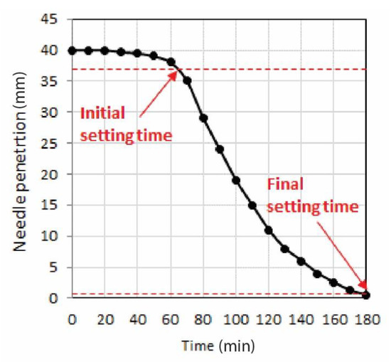 3.2.1. Setting Time and Workability—The Vicat Apparatus Test