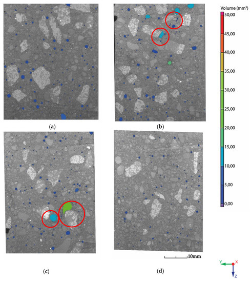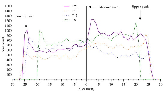 Figure 15. Pore distributions at the interface area based on cross-sectional CT scans, which can be found in more detail in Table 6.