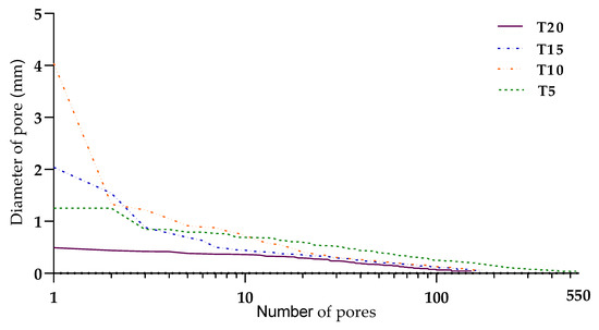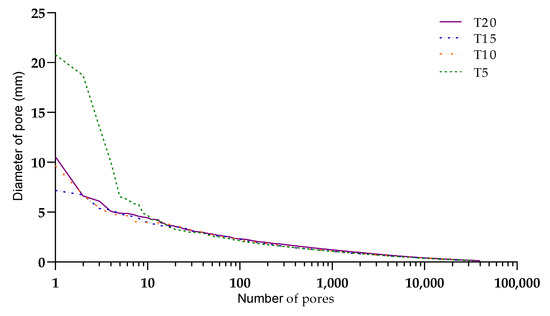 Figure 14. Volumetric pore distributions based on volumetric CT scans, which are described in more detail in Table 5.