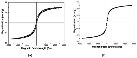 Magnetization versus magnetic field strength curve of (a) Portland cement and (b) nano-Fe3O4 particles.