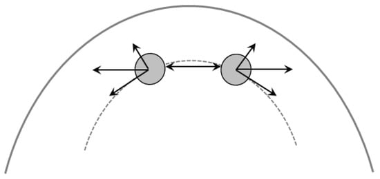 Schematic diagram illustrating the interactions between two particles in a curved geometry (based on [32]).