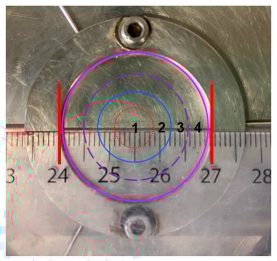 When dividing the lower parallel plate into four sections (S1, S2, S3 and S4), as shown in Figure 12, the order of the curvature in the four sections is S1 > S2 > S3 > S4. During the rheological shearing test, the shear rate (stress) linearly increases from the center to the periphery of the plate, indicating the following order of shear rate: S1 < S2 < S3 < S4. According to the simulation results in Figure 5, it can be seen that S2 and S3 have similar magnetic flux densities whereas S1 and S4 have relatively low magnetic flux densities. Consequently, a slight gradient of magnetic flux density exists when considering the whole parallel plate.