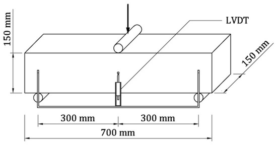 Three-point bending test on un-notched prismatic specimen carried out in the experimental investigation on HRC beams.