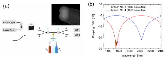 - Pisarik, M.; Peterka, P.; Zvanovec, S.; Baravets, Y.; Todorov, F.; Kasik, I.; Honzatko, P. Fused fiber components for eye-safe spectral region around 2 μm. Opt. Quant. Electron. 2014, 46, 603–611. [Google Scholar] [CrossRef]