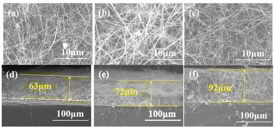 Surface morphology scanning electron microscopy (SEM) images of (a) A1, (b) A2, (c) A3 SiC nanowires, Cross-section morphology SEM images of (d) A1, (e) A2, (f) A3 SiC nanowires.