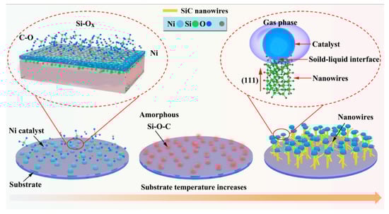 Schematic diagram of growth mechanisms of SiC nanowires loaded with Ni catalysts.
