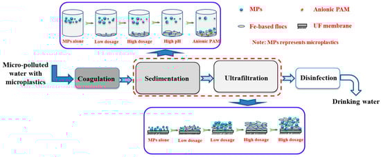- Ma, B.; Xue, W.; Hu, C.; Liu, H.; Qu, J.; Li, L. Characteristics of microplastic removal via coagulation and ultrafiltration during drinking water treatment. Chem. Eng. J. 2019, 359, 159–167. [Google Scholar] [CrossRef]