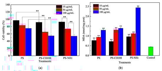 - He, Y.; Li, J.; Chen, J.; Miao, X.; Li, G.; He, Q.; Xu, H.; Li, H.; Wei, Y. Cytotoxic effects of polystyrene nanoplastics with different surface functionalization on human HepG2 cells. Sci. Total Environ. 2020, 723, 138180. [Google Scholar] [CrossRef]
