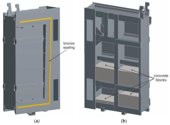 The sluice gate consists of a welded steel structure filled in the lower part with concrete blocks which serve as a load mass (Figure 2a). The ribs of the sluice gate consisting of I-profiles are connected by reinforcing elements. They are covered on the tunnel side with a steel plate to which bronze sealing bars are attached (Figure 2b).