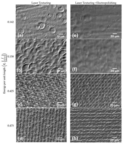 APA StyleSandoval-Robles, J. A., Rodríguez, C. A., & García-López, E. (2020). Laser Surface Texturing and Electropolishing of CoCr and Ti6Al4V-ELI Alloys for Biomedical Applications. Materials, 13(22), 5203. https://doi.org/10.3390/ma13225203