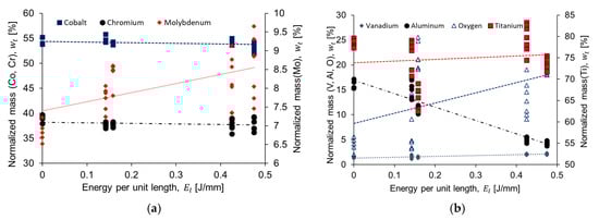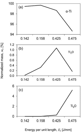- A reduction in the α-Ti and an increase in the formation of Ti oxides (which have a sterilization effect enhancing biocompatibility) was observed with increasing energy per unit length. This was also achieved due to the chemical composition of the Ti6AL4V-ELI alloy and the high heating/cooling rate of the laser process.