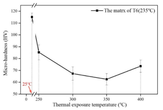 4.3. The Effect of Thermal Exposure on the Micro-Hardness of Al Matrix