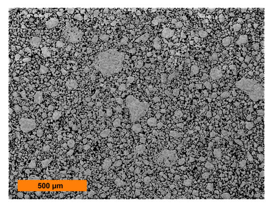 Chemically homogeneous Fe-10Al-3Y2O3-1Ti powder was prepared from Fe, Al, Y2O3, and Ti powders of 99.9% purity by MA using a self-made ball mill. A vacuum-tight milling container with the volume of 22 dm3 and diameter of 400 mm made from low alloyed steel was filled with 100 Fe-1Cr-1C bearing balls of 40 mm diameter (altogether 25 kg). The total amount of 1 kg of the powder was mechanically alloyed by rotation of the milling container along the horizontal axis (70 rpm). After a sufficiently long MA (two weeks) in vacuum, the powder properties became saturated and the powder particles consisted of a homogeneous solid solution with a huge density of defects, like dislocations and vacancies (see [6] for more details). The rather wide size distribution (between 2 to 200 μm) of the cold compacted powder can be determined from Figure 1. It is very complicated to determine the mean particle size due to very wide size distribution. Moreover, the powder involves a huge density of defects and the grains and their grain boundaries are not well defined. The measured content of Cr (0.05%) in the MA powder indicates that about 5% of the milling balls is introduced into the MA powder by the abrasion of milling balls and thus the MA powder contains also 0.05% of C. The influence of milling media on the microstructure and mechanical properties of mechanically milled and sintered aluminium was analyzed e.g. in [48].