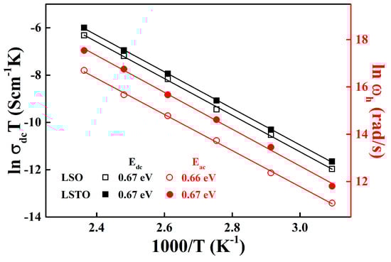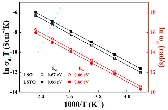 Figure 3 shows the variation of dc and alternating current (ac) conductivities of LSO and LSTO glasses in terms of reciprocal temperature dependence. The dc and ac conductivities in