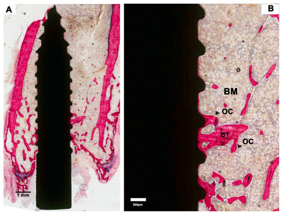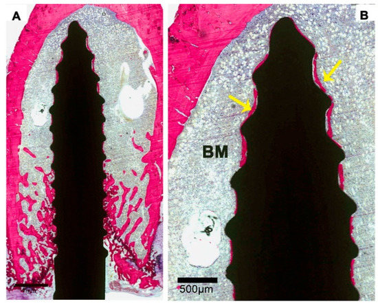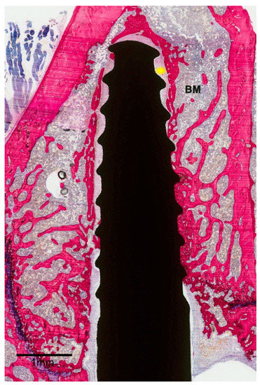 - Clokie, C.M.; Warshawsky, H. Morphologic and radioautographic studies of bone formation in relation to titanium implants using the rat tibia as a model. Int. J. Oral Maxillofac. Implant. 1995, 10, 155–165. [Google Scholar]