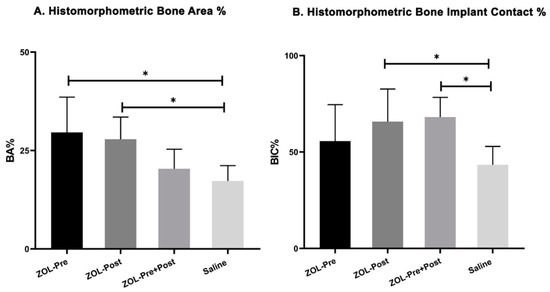 - ZOL-Post: weekly ZOL administration in the 6 weeks from implant placement until the end of the study (=6 weeks) [14].