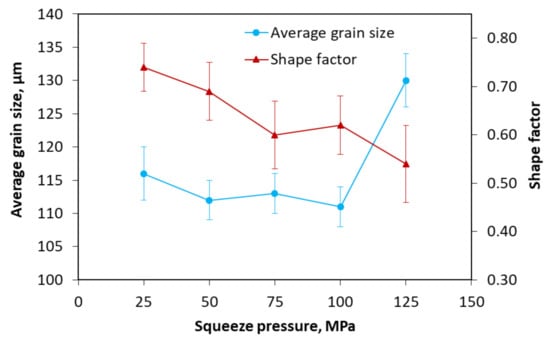 Effects of squeeze pressure on the average grain size and shape factor.