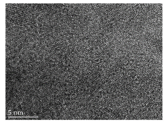 In order to verify the above assumption more intuitively, high-resolution electron microscope (HREM) micrographs of the Fe88Zr8B4 sample were performed and depicted in Figure 3. The HREM image reveals the fully amorphous characteristics with only short-range order in the disordered matrix. Similar features in XRD patterns and the DSC curves of these samples indicates the approximate structural features in all other samples studied.
