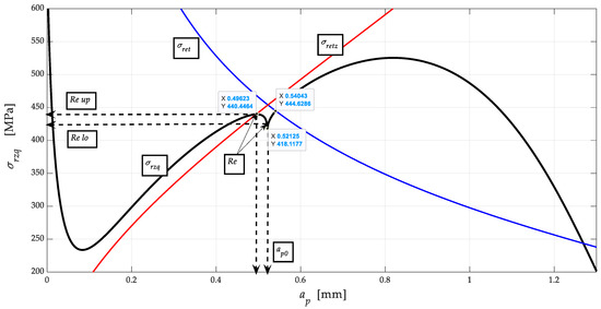 Both Equations are derived by the authors of the article, they are experimentally and statistically verified and have been published for many years, e.g., [28,29,30], etc., or are also the content of patents [31,32]. They are very important in our application solutions because they simulate laboratory tensile and compressive tests for diagrams σ-ε, or σ-Δh with relatively precise localization of the position and the value of the yield strength Re, and thus also the position of the neutral deformation plane h0 and other stress-strain parameters of the materials.