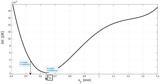 dS is entropy according to the depth of cut hcut, or according to ap (J∙K−1).