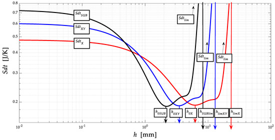 We are introducing distribution curves so that we can observe multiple dependencies at the same time in order to make the concerned dependencies readable within a single graph. We claim that the results of the calculation of selected parameters according to Equations (1)–(11) and their graphical representation are shown in Figure 8 and Figure 9, just as stress-strain distribution curves and thermodynamic functions at depth h, Figure 10 relates to the construction of thermomechanical condition after heat spraying. This description, which is understandable, concerns only the distribution of free energy and the entropic function.